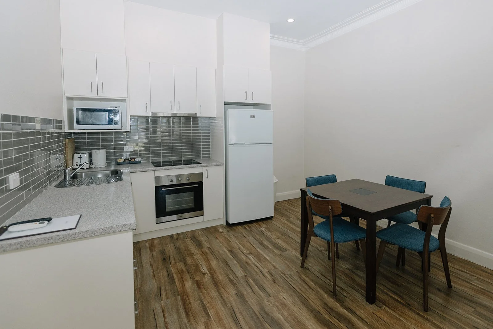 Full kitchen with Fullsized fridge, oven, cooktop and microwave, Plus kitcehnette